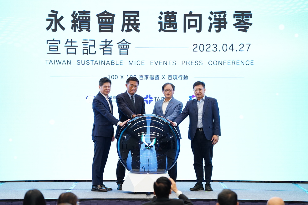 本會吳菁正理事長及協會多位會員,於4月27日(四)上午10:00假台北國際會議中心,參加「會展永續·邁向淨零宣告記者會」。為因應全球永續發展趨勢,鼓勵更多會展業者與國際永續趨勢接軌,貿易局於27日記者會中,宣布112年推動永續會展重要工作及作法,以「評估與輔導」、「發聲與行動」以及「鼓勵與榮譽」三大面向,協助我國會展業者落實會展節能減碳,實踐聯合國SDGs永續發展目標。
